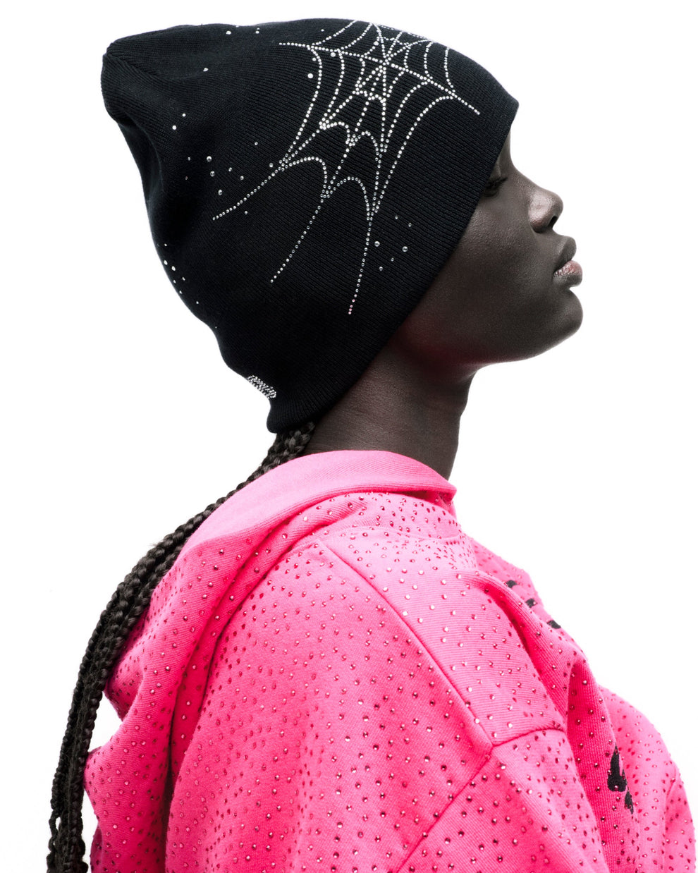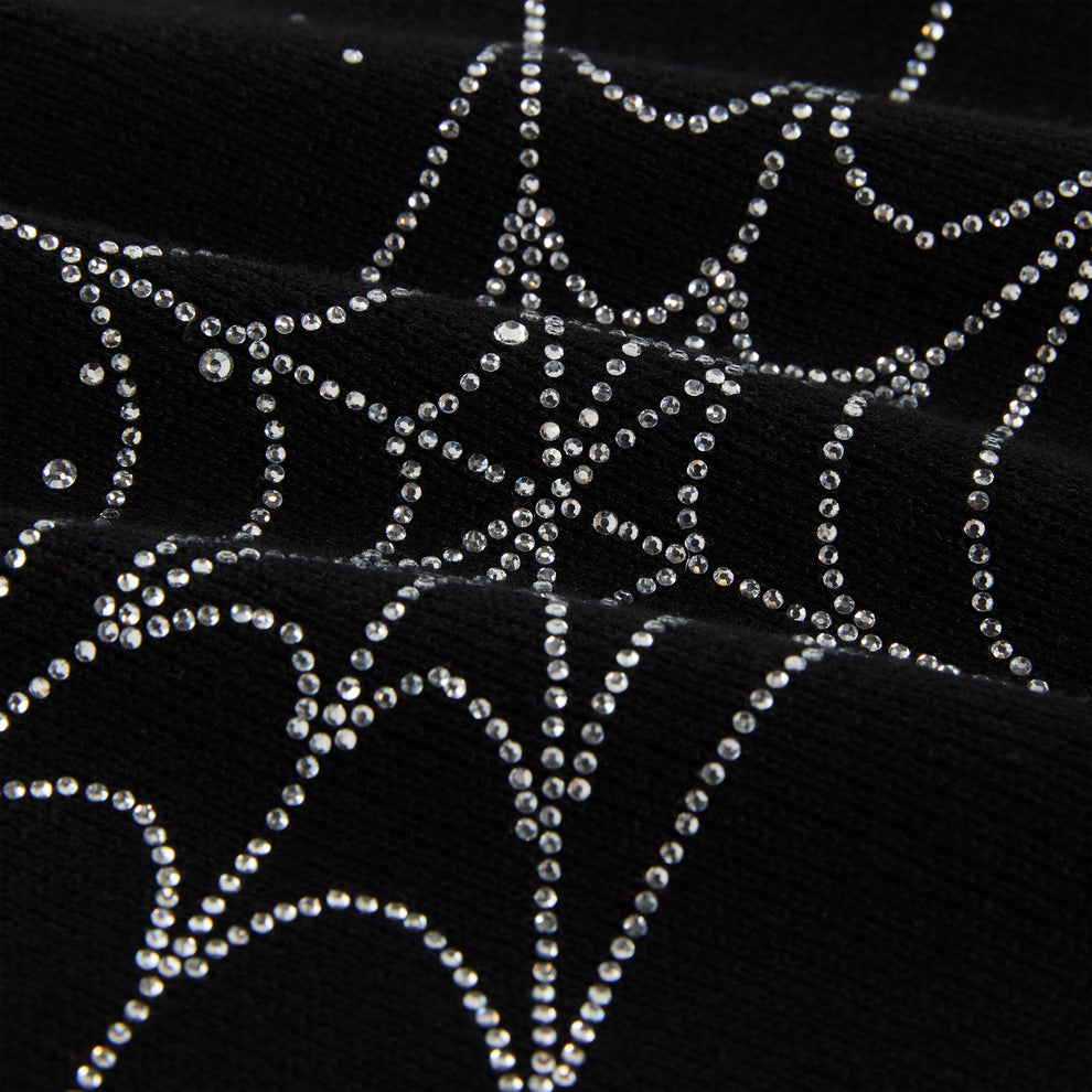 100% acrylic. Rhinestone embellished design on front and back. Hand wash in cold water/air dry.