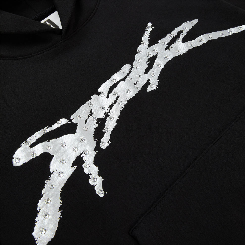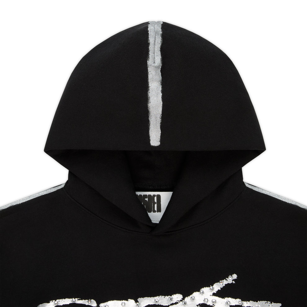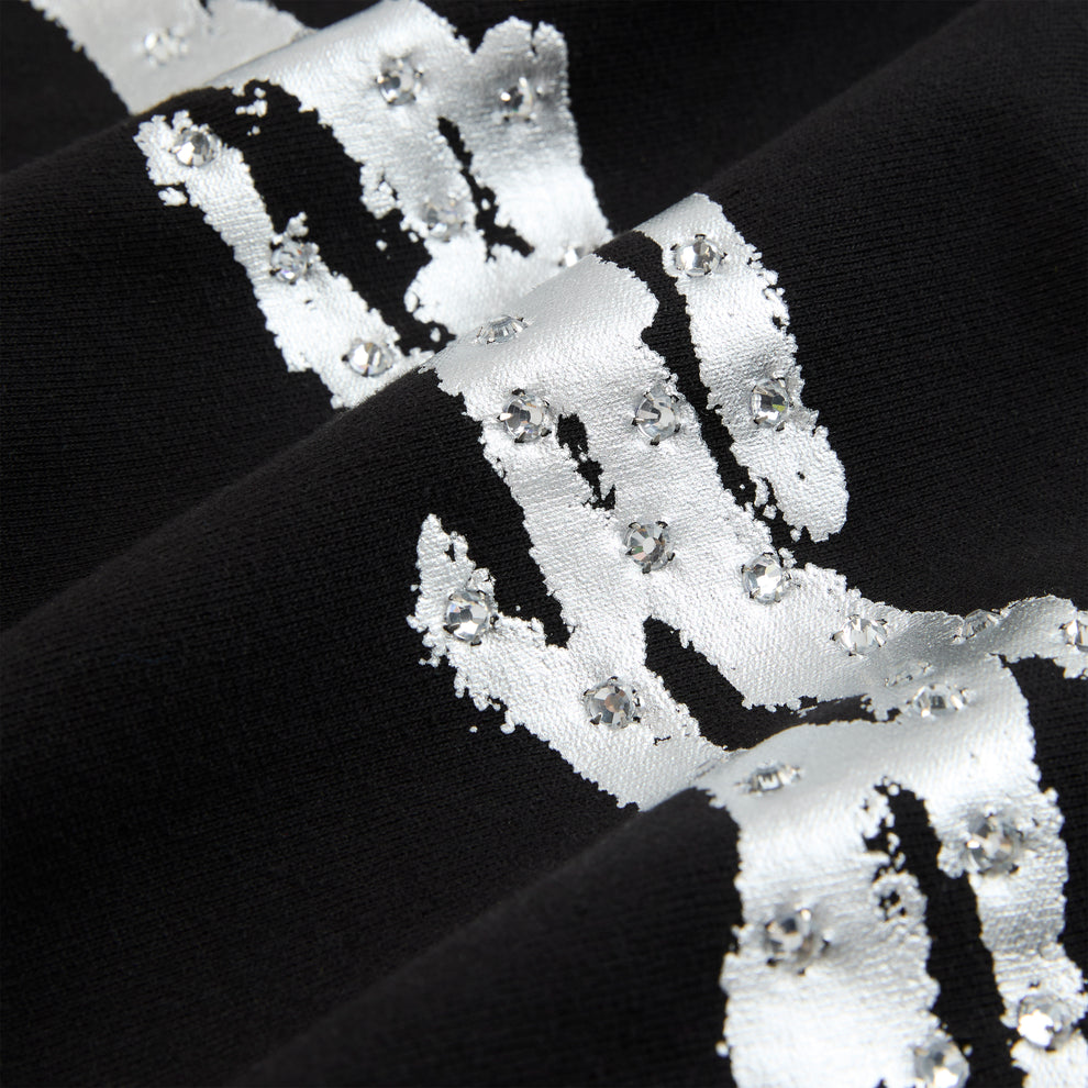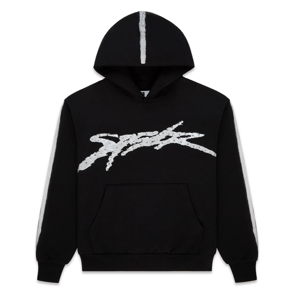 “SP5DER” logo with rhinestone accents on front.