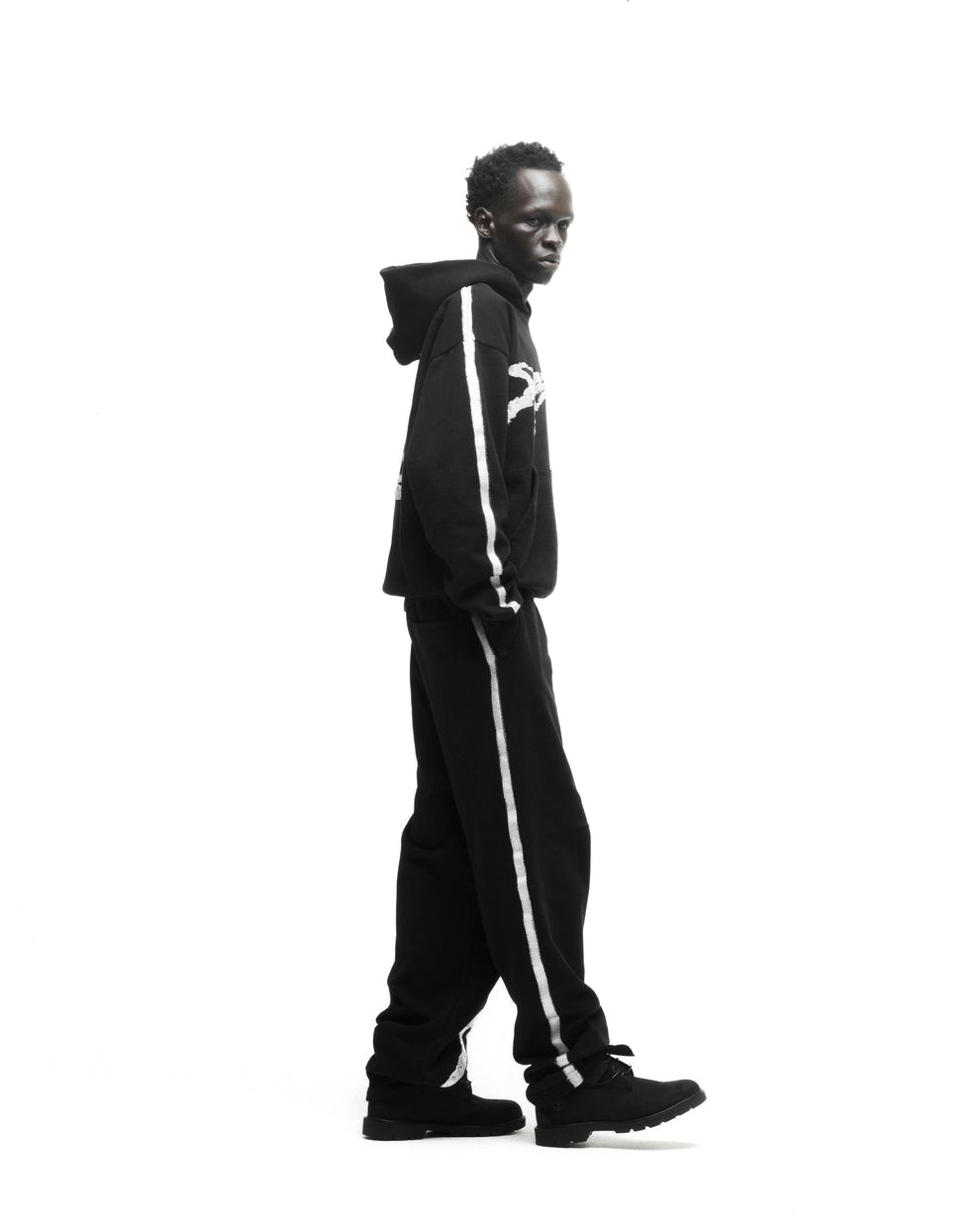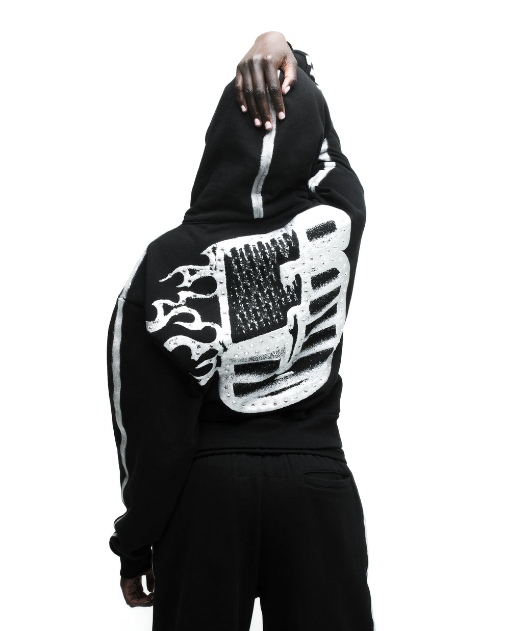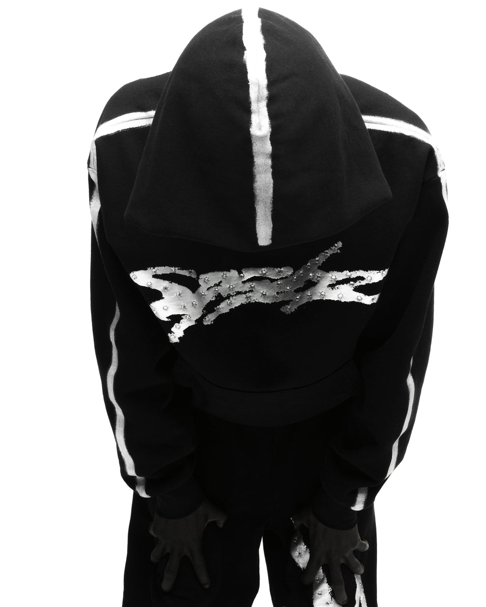 Sprayed-effect stripe down sleeves and hood.