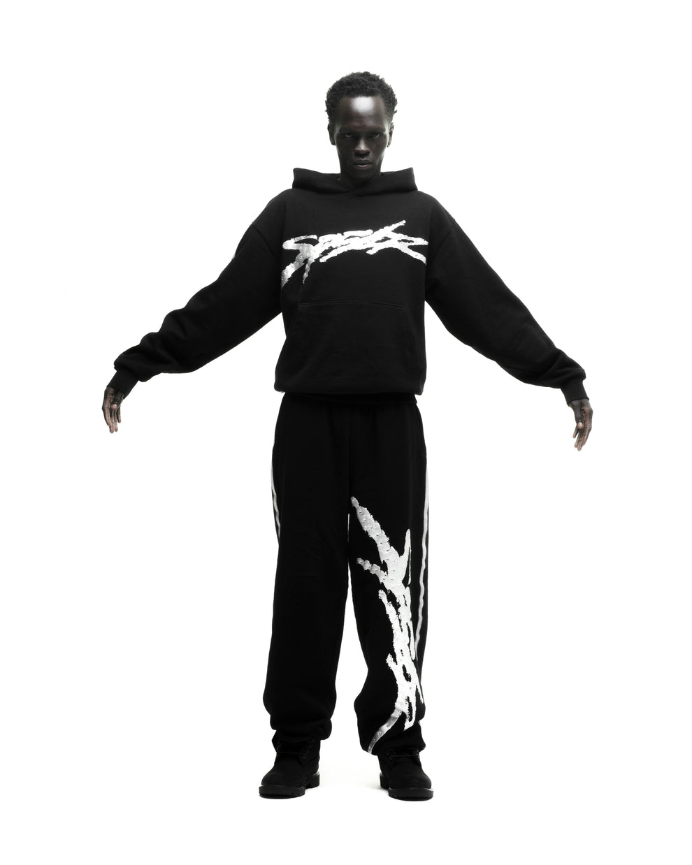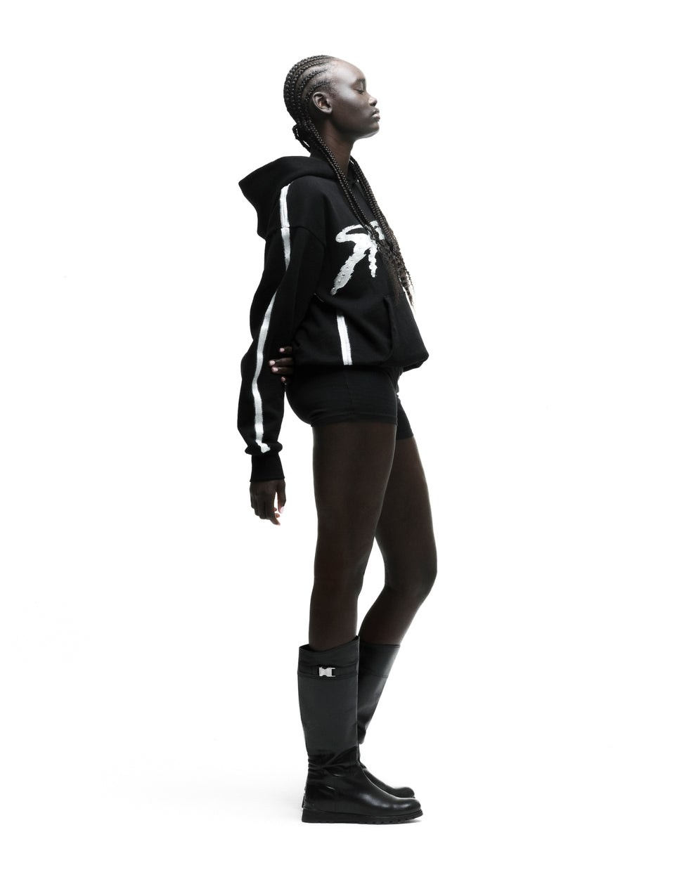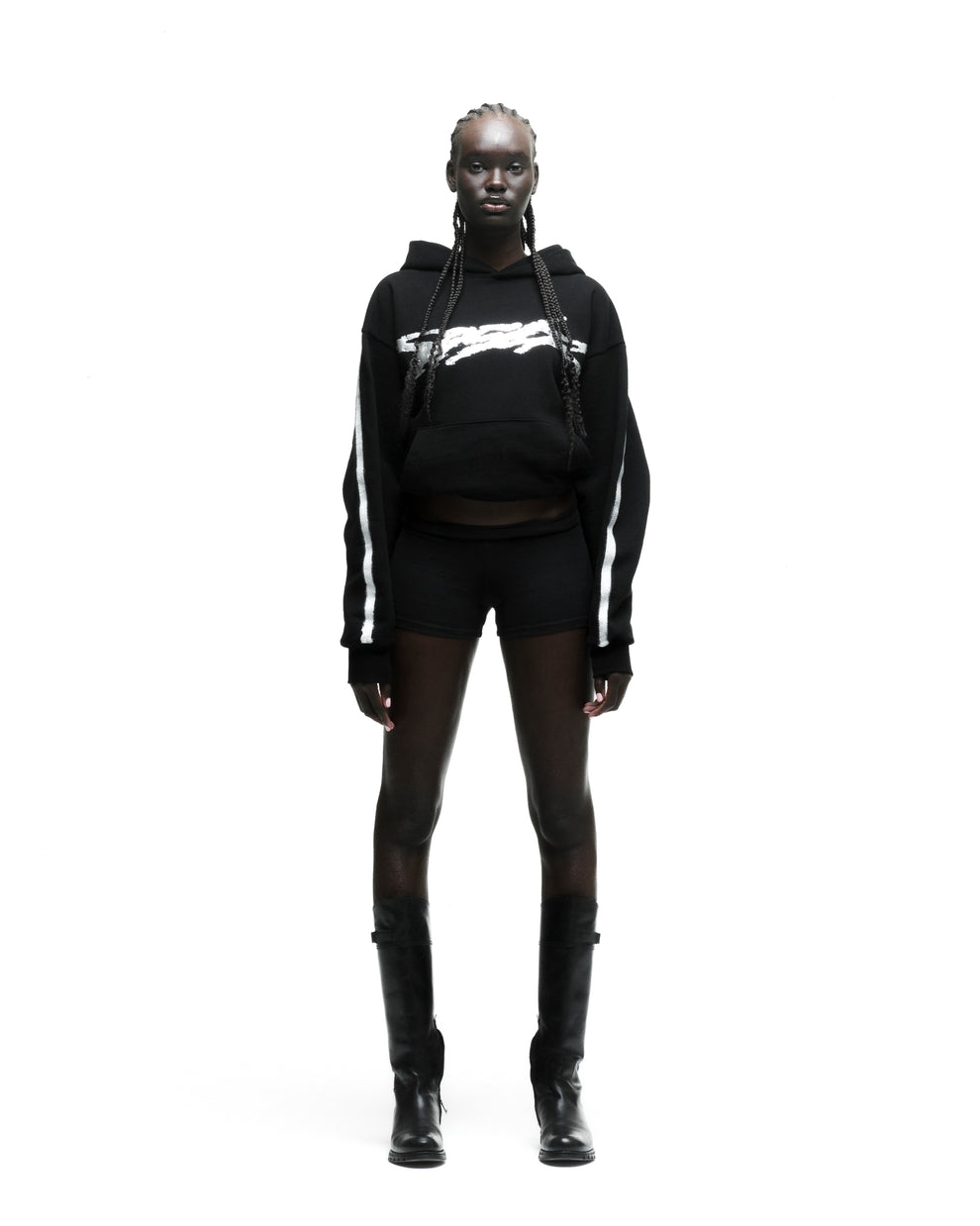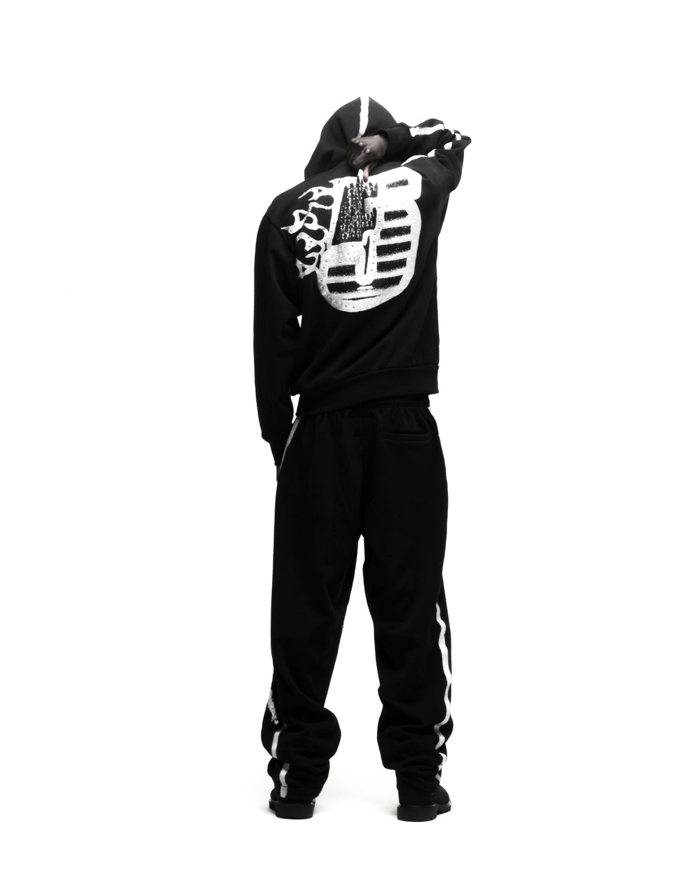 Sprayed-effect stripe down sleeves and hood.