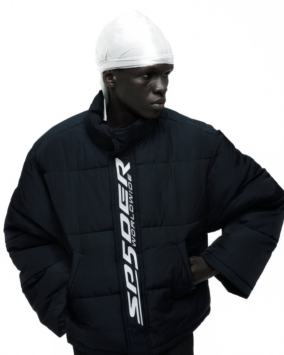 Poly-fill puffer jacket.
