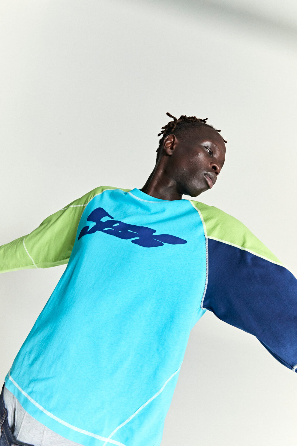 Raglan sleeve with print and top stitching design.