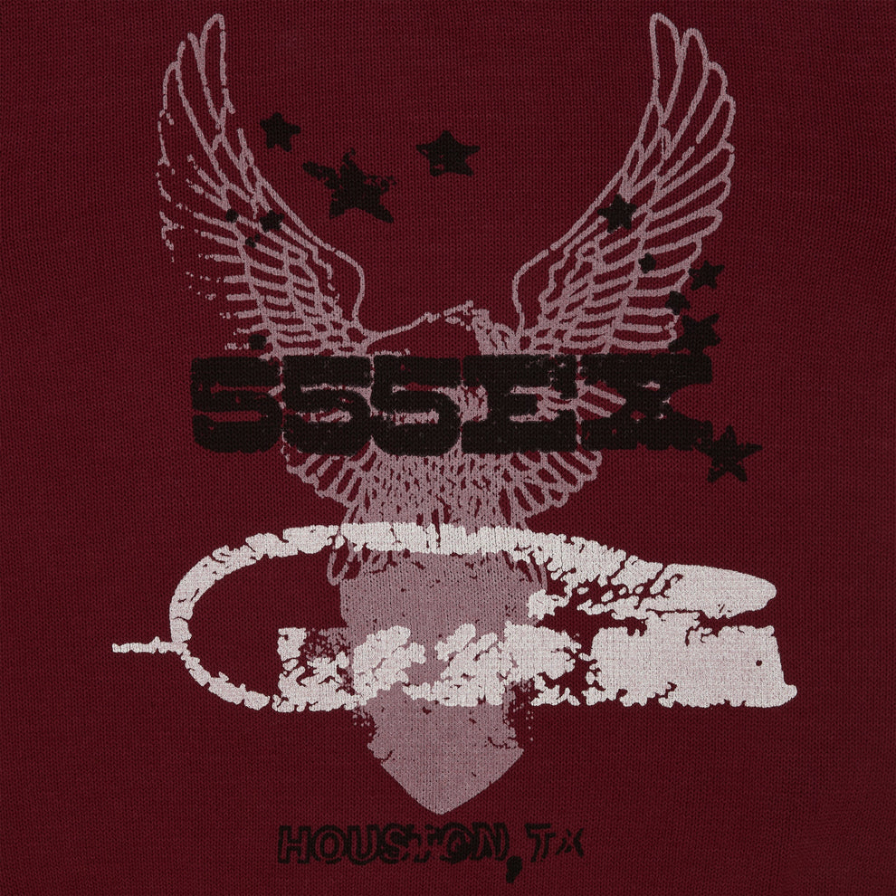 Knit sweater. Graphic print on front. Ribbed collar, hem, and cuffs.