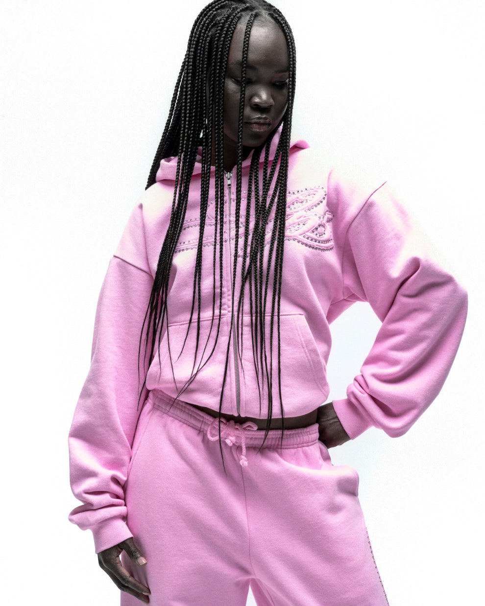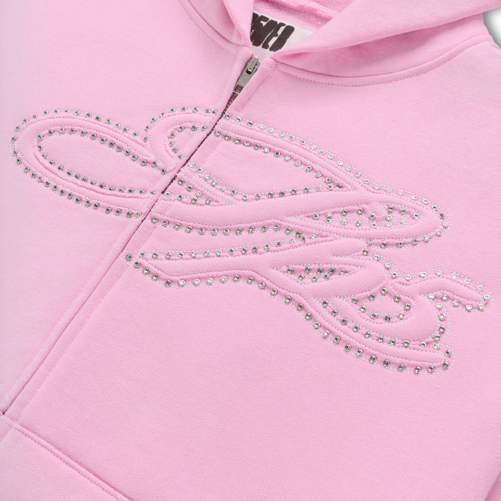 RHINESTONE SCRIPT ZIP HOODIE