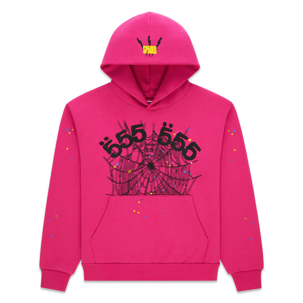 '555' angel numbers and web print on front.