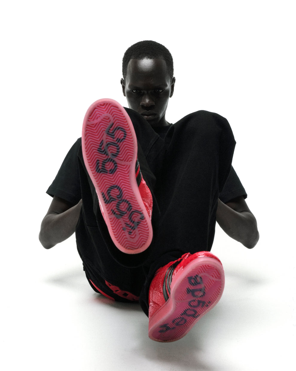 Translucent treaded rubber outsole with tonal graphic detailing.
