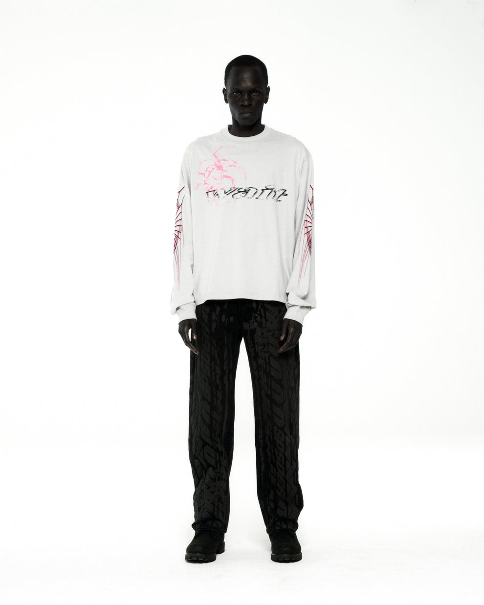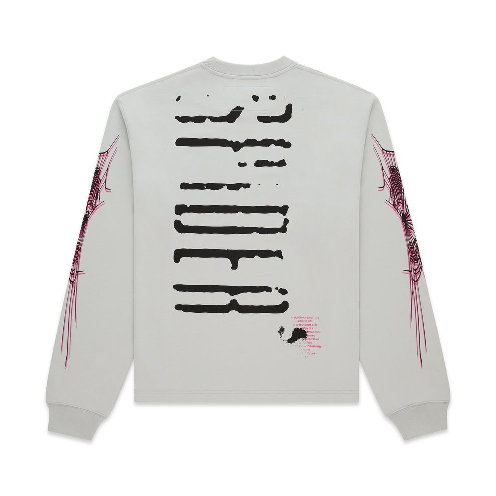 100% cotton long sleeve tee. Graphic print on front, back, and sleeves.Ribbed collar and cuffs. Standard fit.