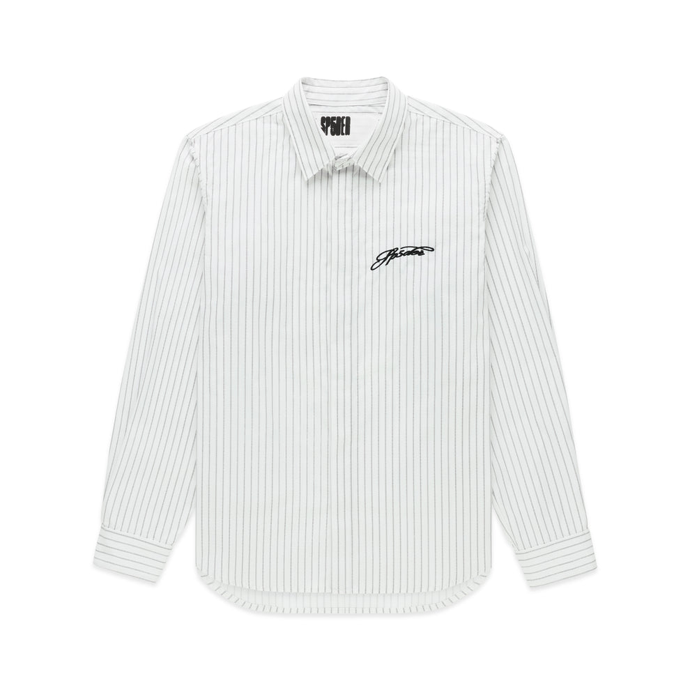 Embroidered script logo on chest.